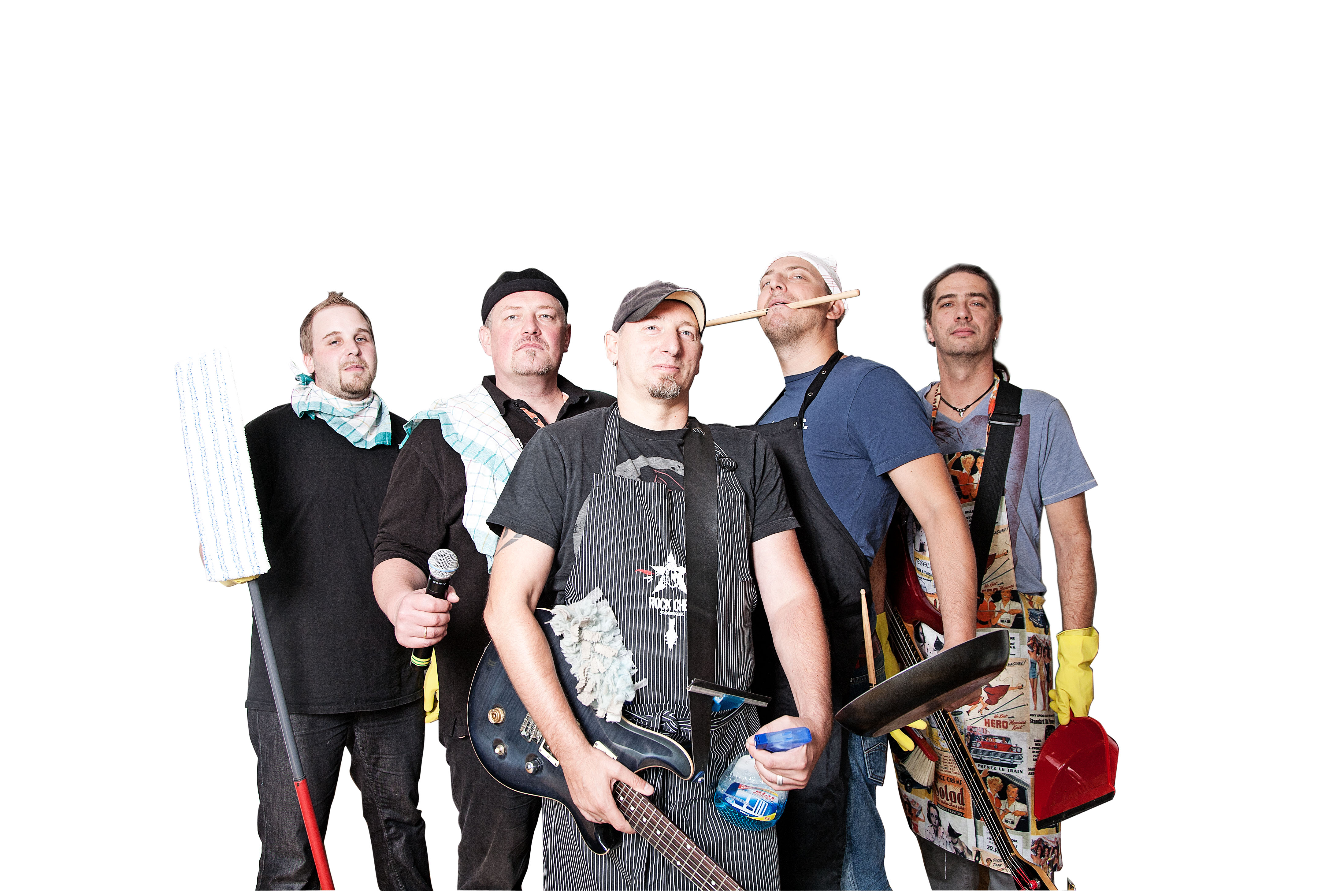 Die „House-Shoe-Heroes“ knüppeln, stampfen und schreien sich die Hausmännerseele seit fast 4 Jahren aus dem Leib und bringen Glanz und fetten Sound in jede Hütte, was sie bei ihren Wisch-Mops schwören und schon bereits in mehr als 20 Gigs unter Beweis stellen konnten.